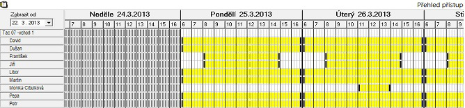 U každého prostředku lze nastavit možnost přístupu podle časové zóny. To znamená, že lze nastavit skupině nebo samostatné osobě přístup do určeného objektu pouze v povolený čas a den. Například, někteří zaměstnanci mají přístup do budovy v pondělí až pátek od 7:00 do 20:00, někteří nonstop a někteří jen v určité dny.